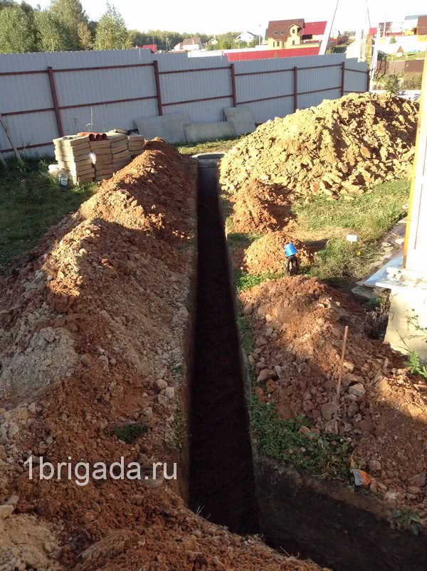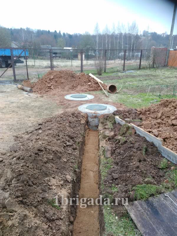 В стоимость входит: доставка бетонных колец, разгрузка, копка, установка колец, герметизация стыков между кольцами. Копка траншеи, прокладка канализационных труб, соединение к колодцу, засыпка траншеи - 700 руб. п.м. без материала..